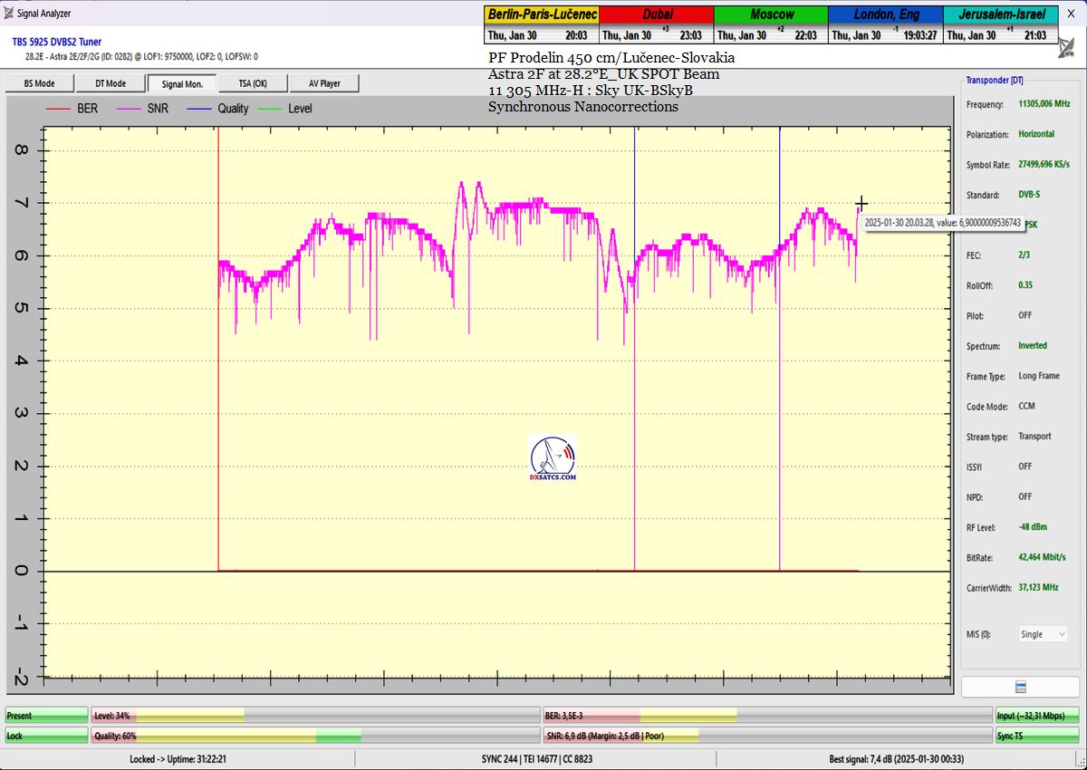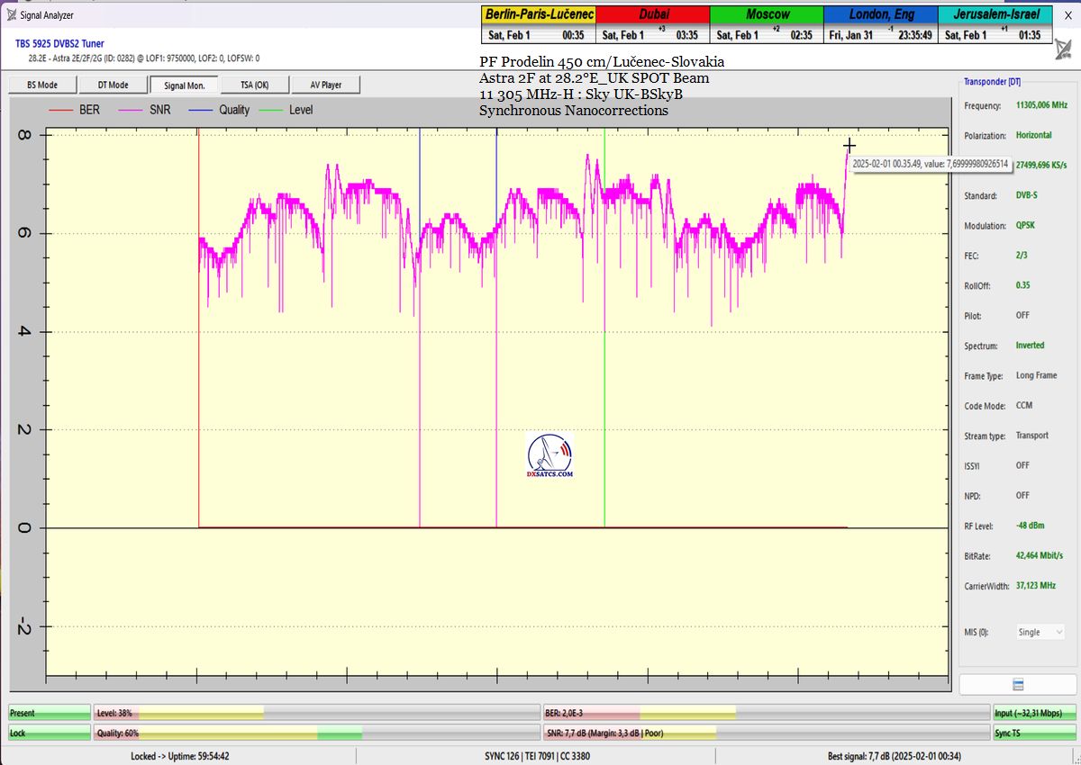 ►EN_Successful application of my technological invention "Synchronous Nano-Corrections" on the 11,305-H carrier of Sky UK-BSkyB and the reception stability verified through signal monitoring over a total duration of 102 hours in the south of central Slovakia.