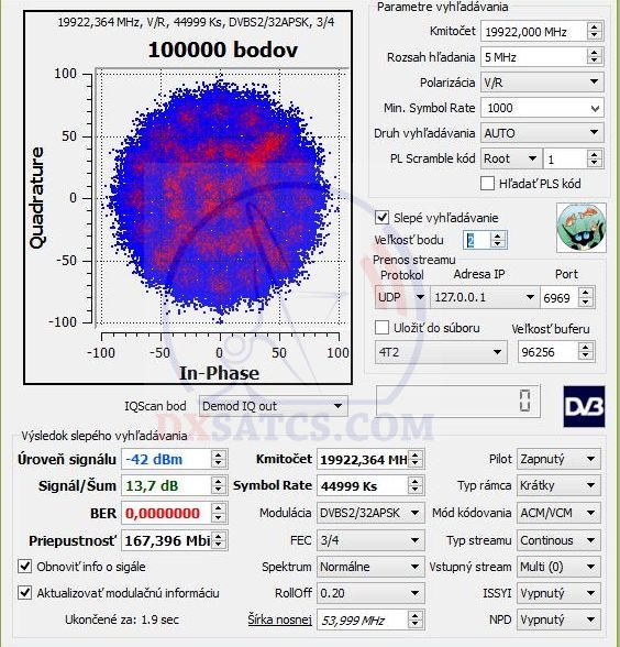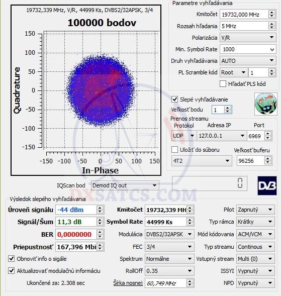 14.7.2015 : Prvá analýza rozsahu spektra KA-pásma od 19,7 do 20.2 GHz geostacionárneho objektu Thor 7,ktorý z pozície λ=0,8° zd