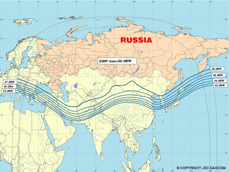 Yamal 201 at 90.0°E - KU 201 footprint : 11 670 V RuSat radio network
